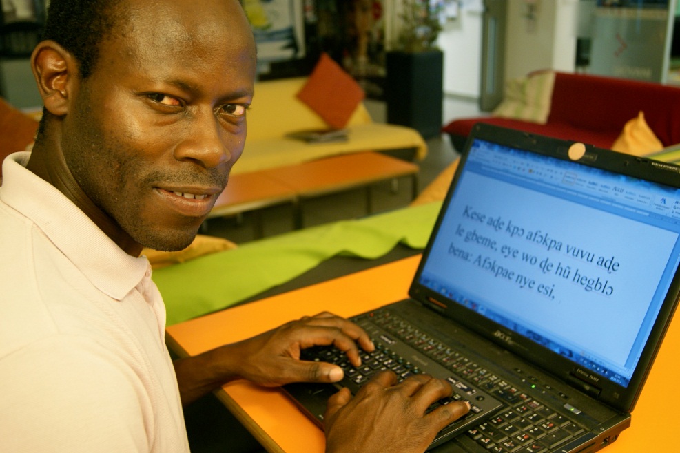 Samla can configure word processing programs to operate in Ewe, and plans to install these programs in Internet cafes and private schools. Six private Togolese schools have already agreed to cooperate with his project, and his university in Munich has agreed to equip these schools with computers.
